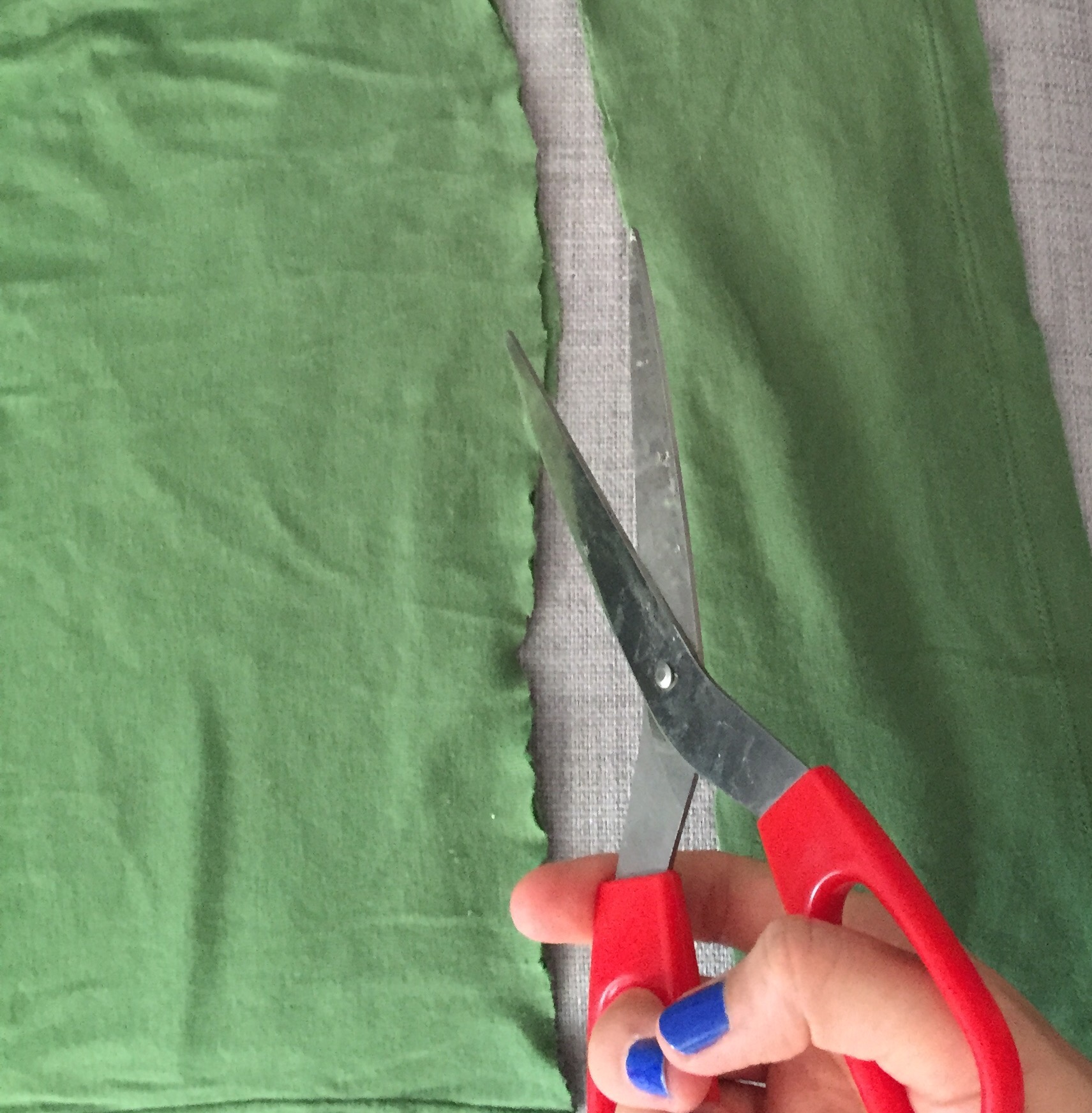 Lay out the shirt as flat as possible. Cut the shirt horizontally.