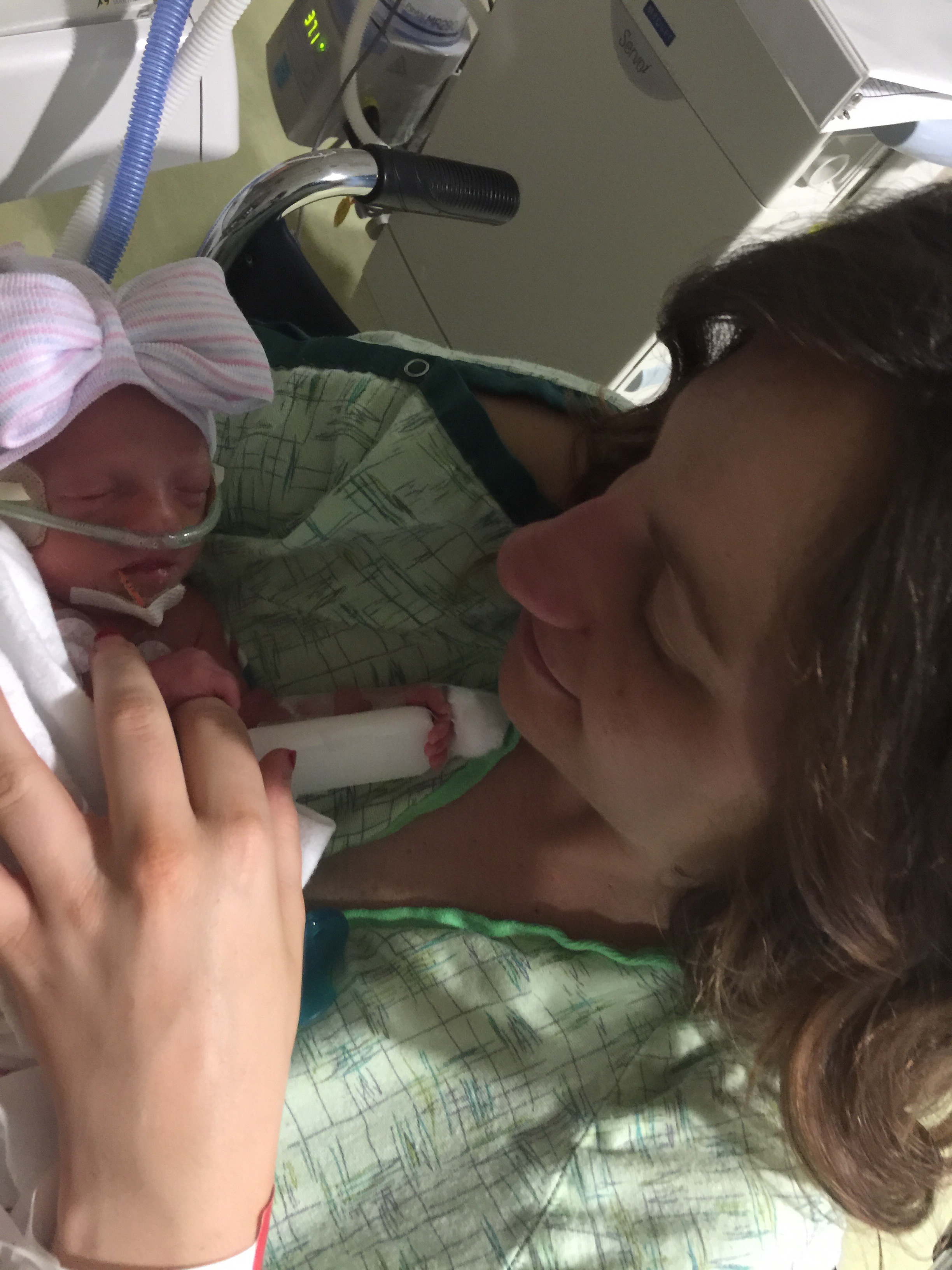 Before I jump into it, I want to briefly explain what the complications were with my daughter and what caused her to be premature. My pregnancy alone was a long difficult journey even with it being cut short. At twenty weeks into the pregnancy, at the usual anatomy scan that every baby gets, Harper-Ensley was measuring small. As time went on, her growth began to slow drastically and we were diagnosed with IUGR which stands for intrauterine growth restriction. In addition to this, her doppler flows began looking diminished. Dopplers measure the flow of blood to and from the placenta and the baby; when it is reduced or reversed it means the baby is not receiving the nourishment it needs to grow and survive in the womb. There were also times the flow was reversed. At one point she nearly had to be taken out at 28 weeks. I was admitted at that point into the hospital and we managed to make it miraculusly to 34 weeks. This time in Antepardum was filled with daily ultra sounds, Doppler flow readings and NST’s. Two days before her day of birth, we were told she had dipped below the tenth percentile and needed to come early. The doctor felt she would thrive better outside of me than in. (This is where the self-inflected pity and guilt come into play) The truth is, that her head was measuring at 15% while the rest of her body was at less than 1%. A baby at 34 weeks is usually 4 3/4 – 5 1/4lbs. On February 1, 2017, my daughter Harper-Ensley Rowan Nelson was born weighing 3lbs 10oz via c-section because she was too fragile and couldn’t handle a vaginal birth. My husband and I got to see her and her tiny body briefly before she was rushed up to the NICU.