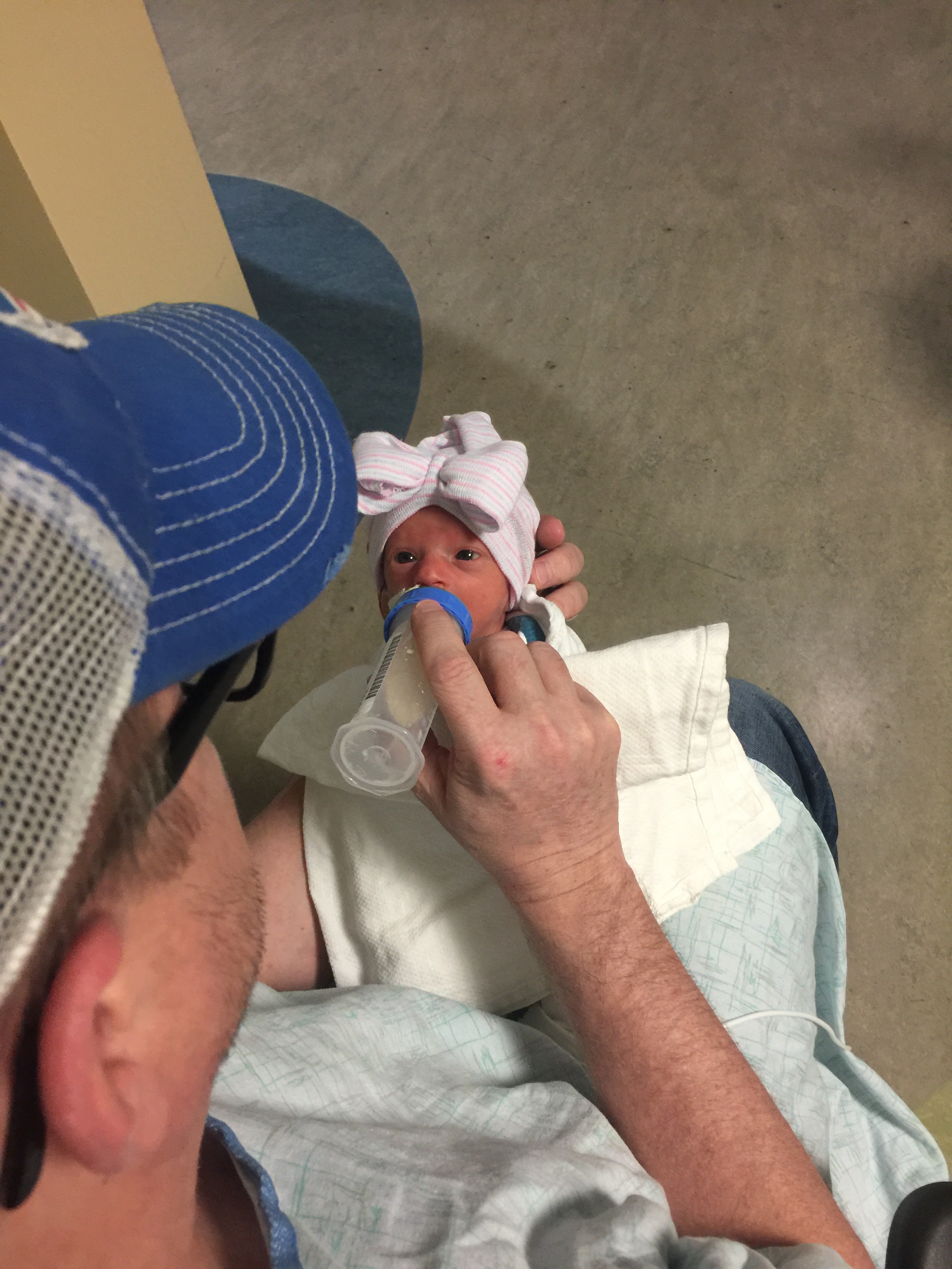 Upon discharge, the doctors and nurses told us to maintain these care times and that holding her and interacting with her more than that (approx 30 minutes) could cause her to not gain weight due to stress from overstimulation. So here we were beyond thrilled to have our preemie princess home but completely overwhelmed with no outside help from anyone. There were no dinners brought by, which meant Jason needing to stop and pick up fast food on his way home from work or he would have to cook when he got home, and my lunches consisted of whatever I could scrounge up within 2 minutes. I don’t want to sound like I’m complaining or ungrateful for the thoughtful gifts the days after she was born, but it’s just one of the dozens of things people don’t understand about having a preemie.