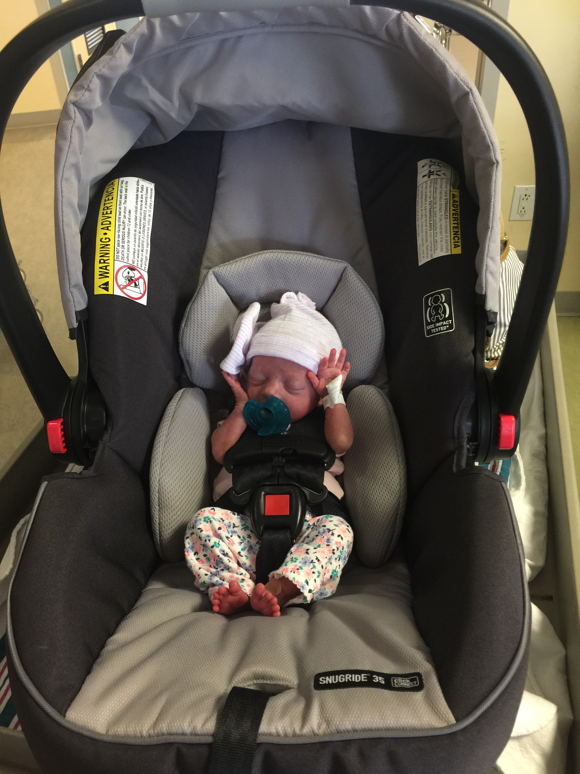 I’ll never forget seeing her little self for the first time on the baby scale just to my left. I vividly remember how confused I was as to why her skin looked so dark. It was later brought to our attention that she was looking blue-ish grey because of the lack of oxygen she was getting. After 3 weeks in the NICU, which involved oxygen tubes in her nose, feeding tubes down her throat, wires stuck all over her body, an IV in her arm, purple toes for a week, a 3 day stint under blue biliruben lights, and living in a plexiglass box for nearly her entire stay we were able to take our little baby girl home.