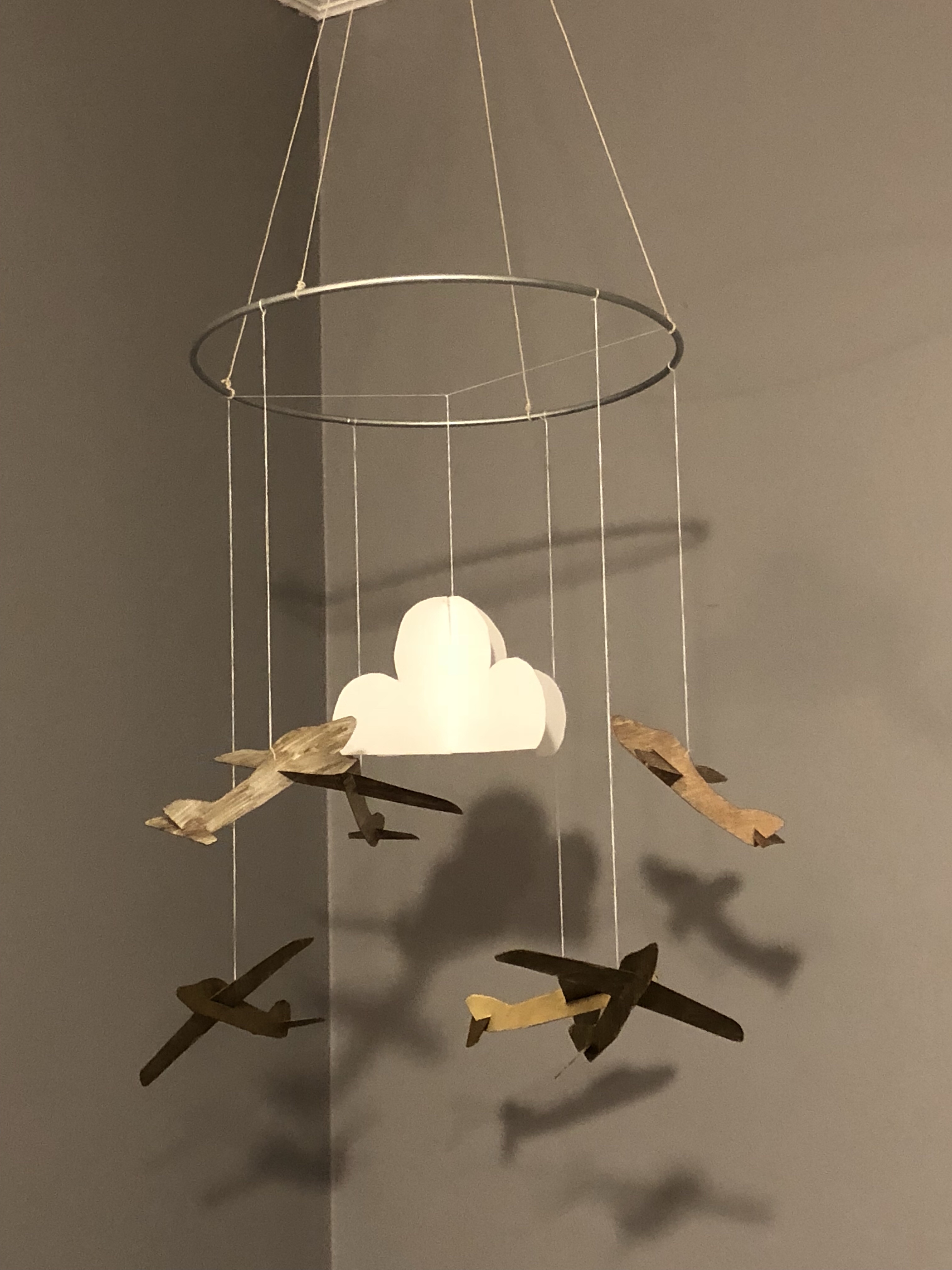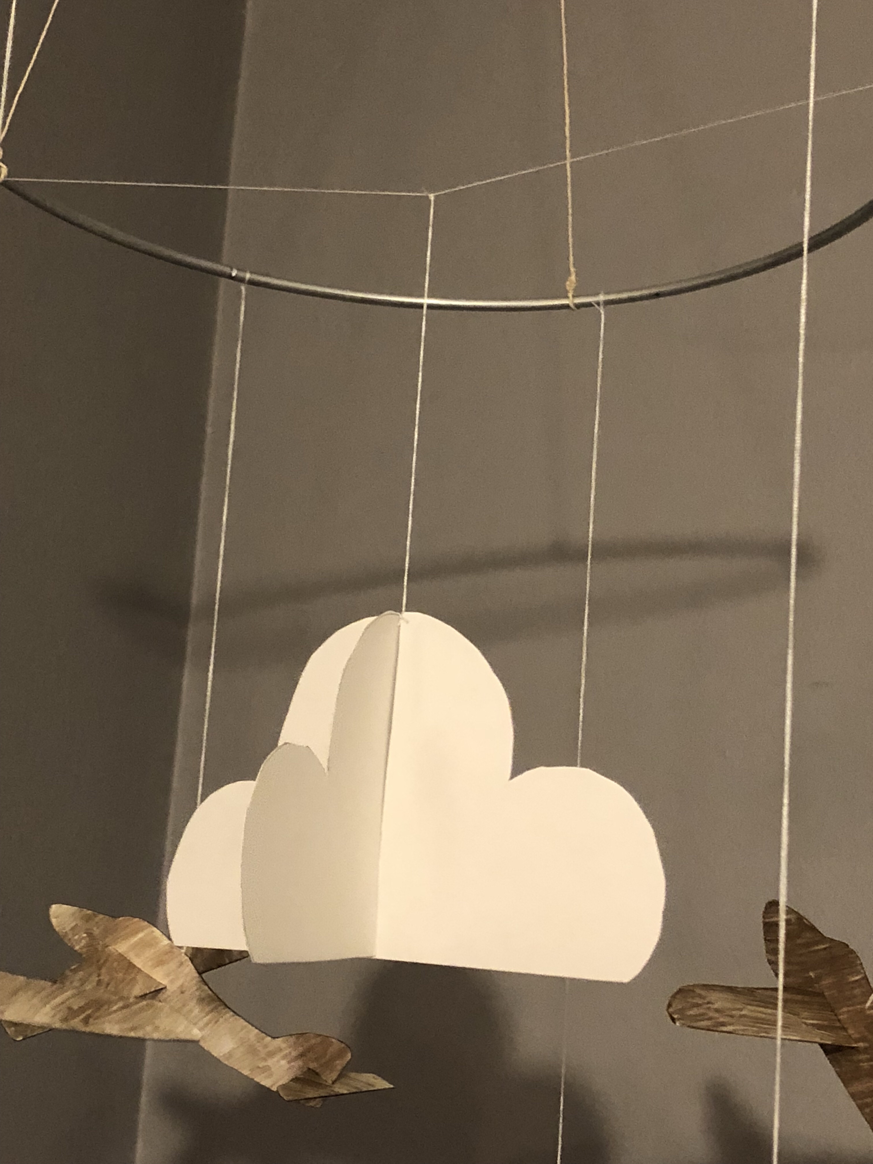 So THIS project was fun. It adds just the perfect amount of whim and handmade charm to the nursery; I find myself staring at it regularly as it twists and turns when I rock my sweet boy late at night.