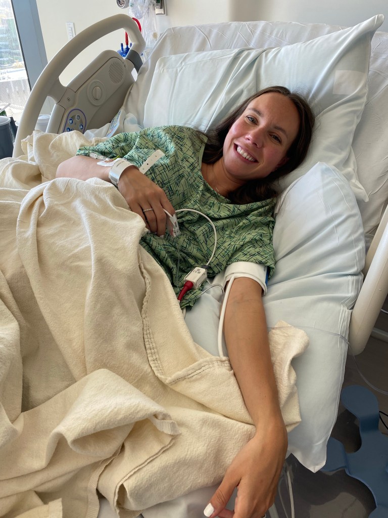 She does my bloodwork, inserts my IV, and does a covid test. I’m finally escorted to the birth center around 2am. David leaves to grab our bags from the car.